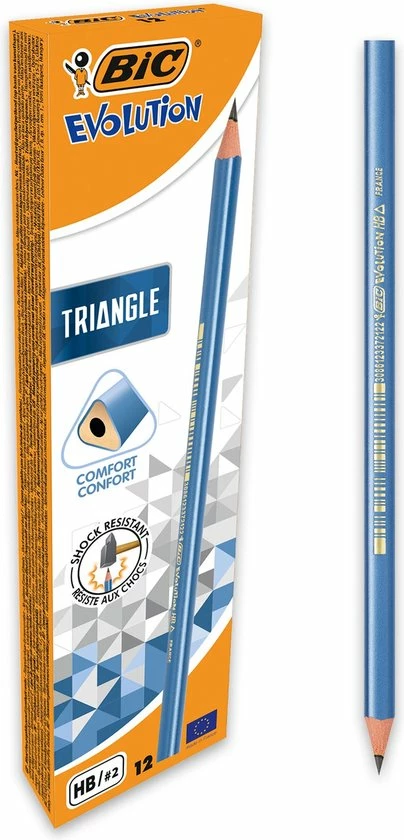 - Met hun strakke ontwerp en HB-stift zijn de 12 BIC Evolution Triangle-potloden in deze doos perfect voor dagelijks gebruik