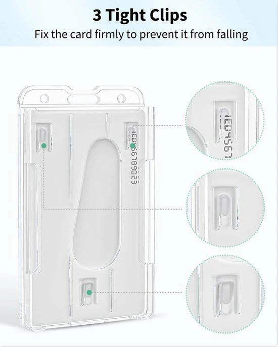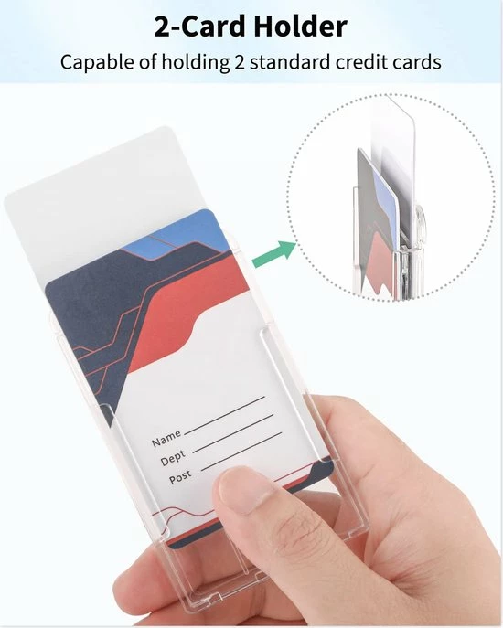 Houder voor 2 kaarten: Het biedt plaats aan 2 standaard creditcards van 3-3/8 H bij 2-3/8 B inch verticale ID-badges.