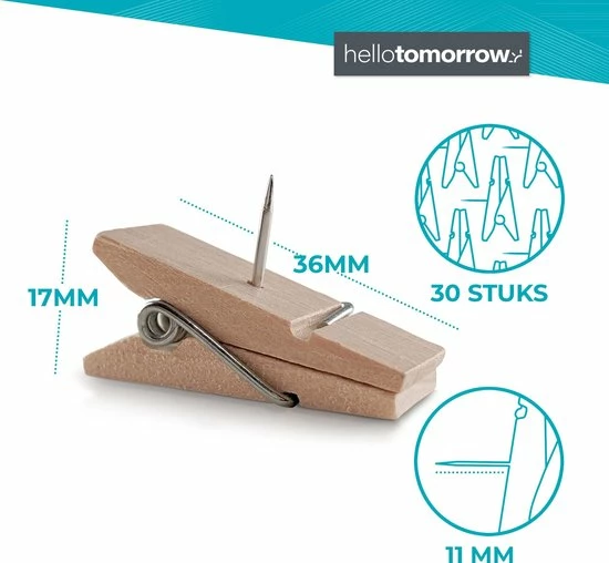 ➜Houten punaises (in een handig ziplock tasje) – 30 stuks