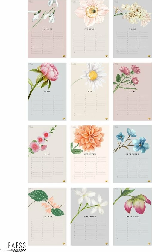 Elke maand heeft zijn eigen illustratie van een bloem passend bij de tijd van het jaar.