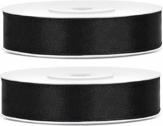 2x Satijn sierlint rollen zwart 12 mm. Zwart decoratie lint op een rol van 12 mm breed en 25 meter lang. U ontvangt 2 rollen. Sierlinten/cadeaulinten/decoratielinten.