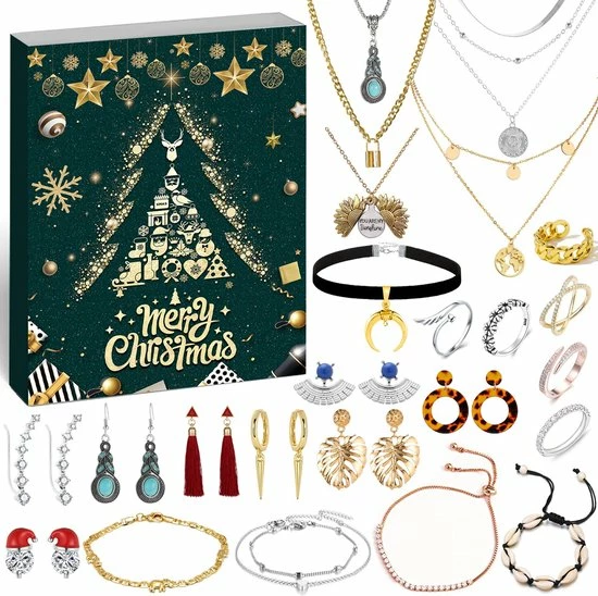 De dagen voor kerstmis worden magischer dan ooit met deze luxe kalender. Tel in spanning af met 24 betoverende cadeautjes zoals prachtige oorbellen, verstelbare ringen en dubbele kettingen met bijzondere symbolen. Wat er precies achter het deurtje verstopt zit, is elke keer weer een grote verrassing!