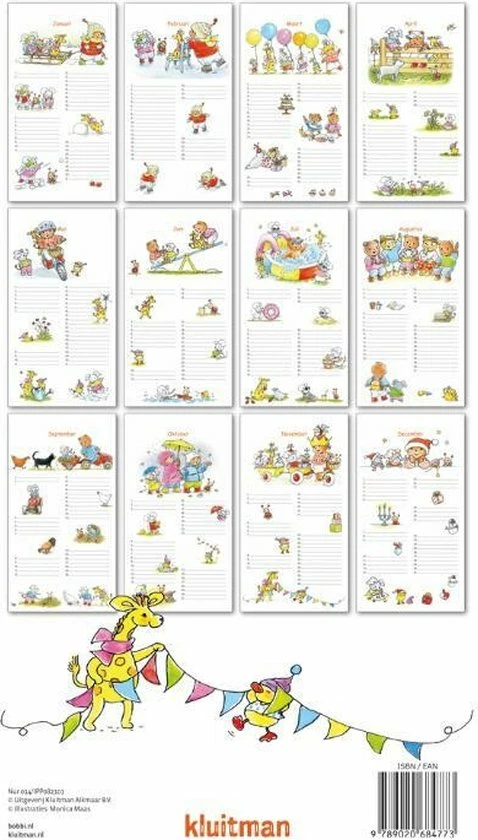 De leukste verjaardagskalender voor alle Bobbi-fans! De kalender is gemaakt van stevig kartonbord en elke maand kun je kijken naar toepasselijke en vrolijke Bobbi-illustraties.