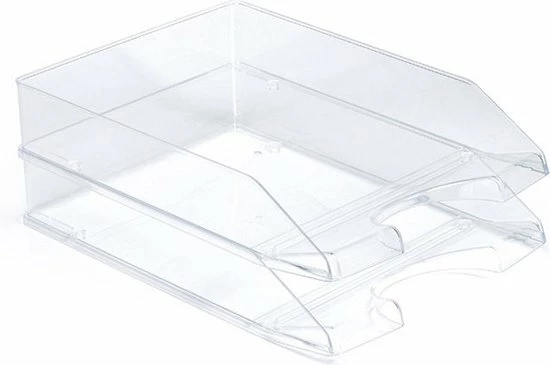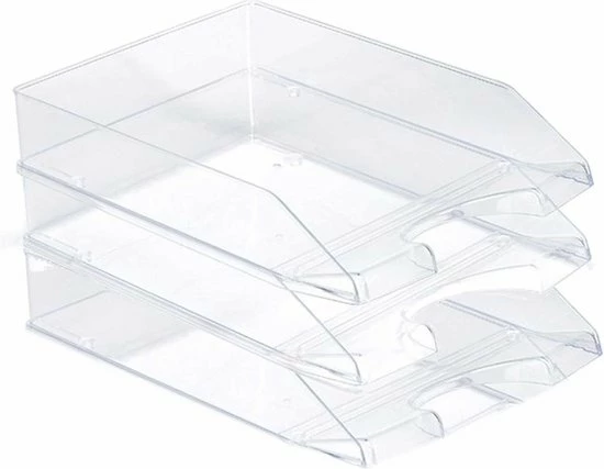 Pakket van 3x stuks plastic brievenbakjes in A4 formaat in de kleur transparant. Het brievenbakje is 25,4 x 35 x 6,1 cm groot en is stapelbaar. Met uitsnede aan de voorzijde voor gemakkelijke toegang tot uw documenten. Opbergen, organiseren en opruimen voor thuis of op kantoor.