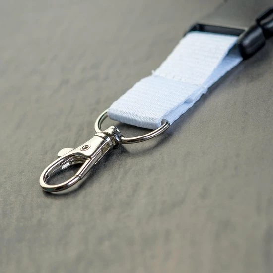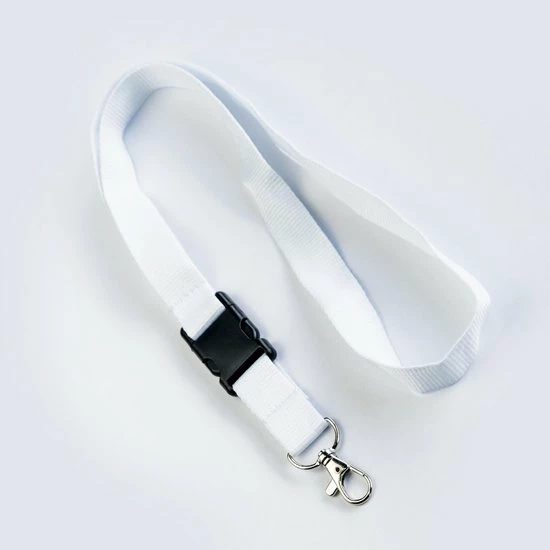 1x Wit keycord / lanyard. Luxe uitvoering polyester band, 20 mm breed. Inclusief kunststof buckle sluiting en hanger.