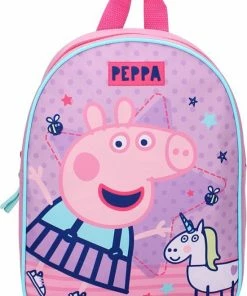 Ga vrolijk op pad met deze roze Peppa Pig-rugzak! De rugzak is gemaakt van polyester. Op de tas staat Peppa Pig samen met een eenhoorn. De tas heeft één ruim hoofdvak en is afsluitbaar met een rits.