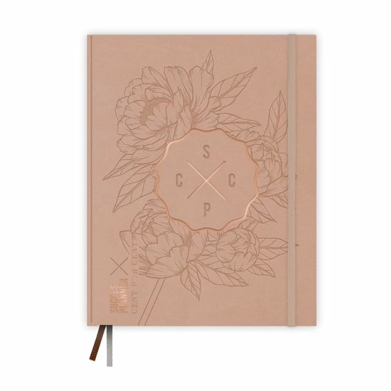 - Nude-kleur met grote roségouden SuccesPlanner ‘kroonkurk’ en pioenrozen in diepdruk