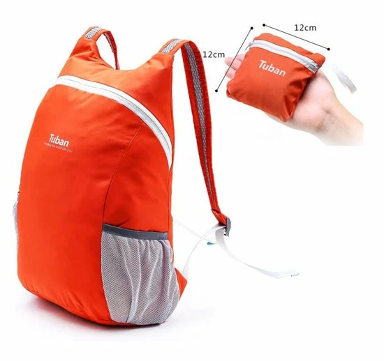 Opgevouwen heeft de rugzak een grootte van 12 x 12 cm en weegt slechts 200 gram. Zo neemt de rugzak dus nauwelijks ruimte in.Deze rugzak is ideaal voor een wandeling of voor alledaags gebruik. Ook is de tas ideaal voor op vakantie, doordat u de tas gemakkelijk in uw koffer of reistas kunt doen.
